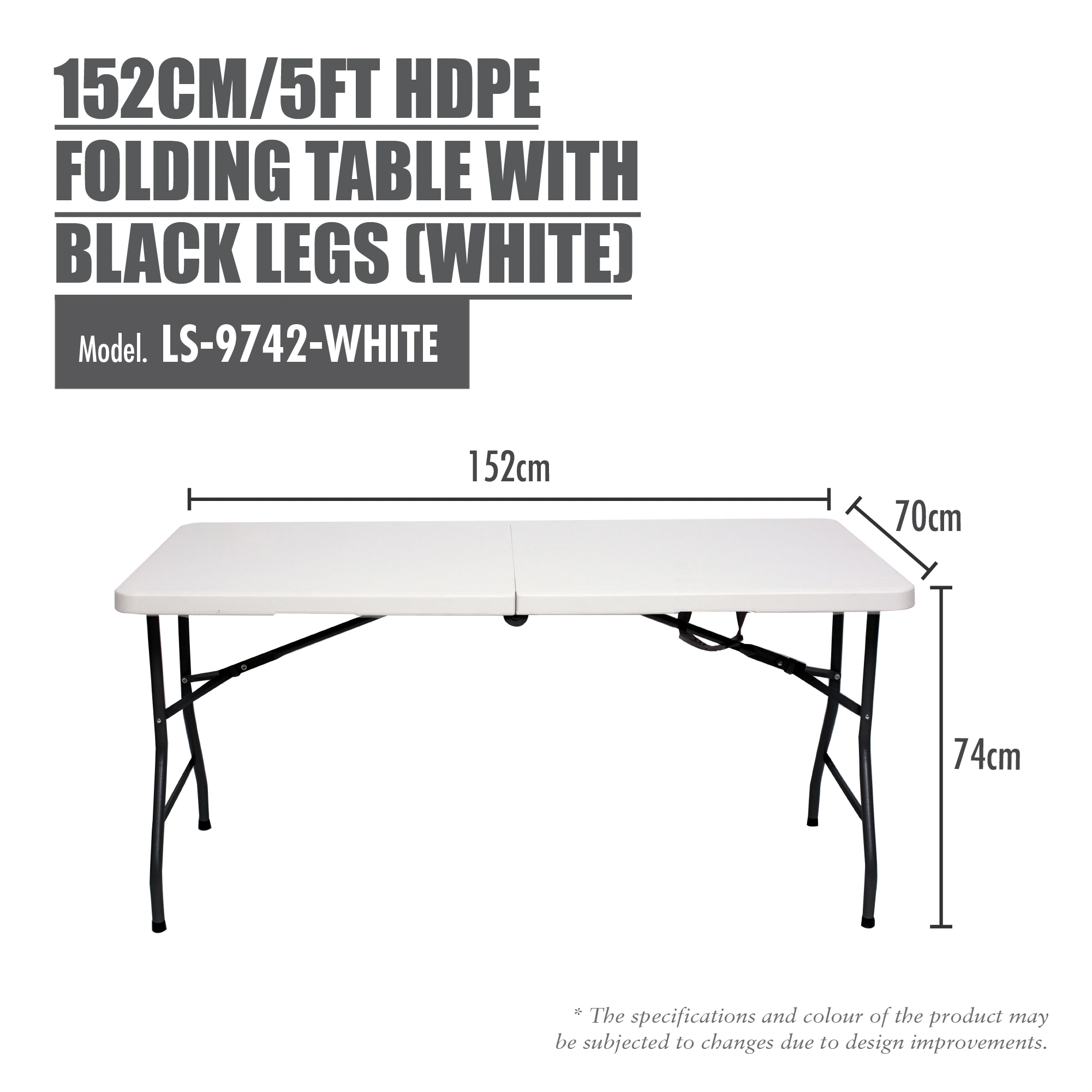 HOUZE – 80|86|122|152cm HDPE Folding Table with Black Legs – Portable | Office | Plastic | Outdoor