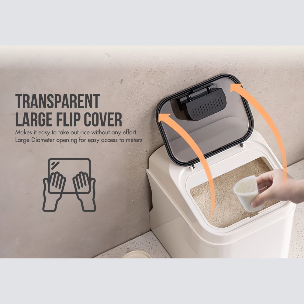 When it comes to storing rice or any other essential grains. KitchenMate offers you an unparalleled experience with this 5kg & 10kg Moisture-Proof Airtight Locking Rice Container. Designed with supreme poly materials. this white beauty matches your modern kitchen decor and guarantees a prolonged shelf life for your stored items.