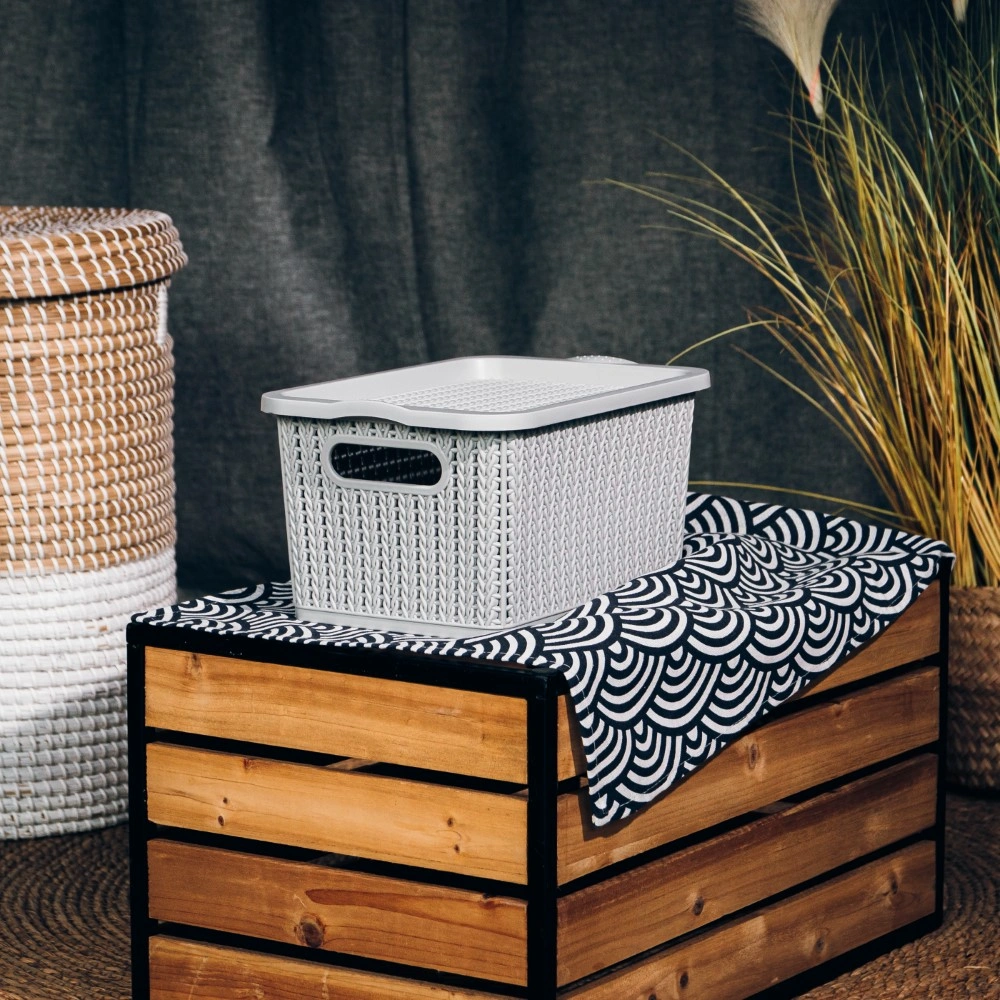 • Unique weaved design and lidded to secure contents inside